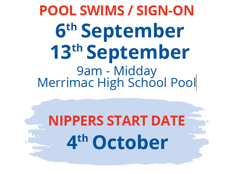 There will be 2 Sign On Days where there pool swims can be completed. Nippers can also get their pool swim evaluation completed by a swimming teacher/coach.
