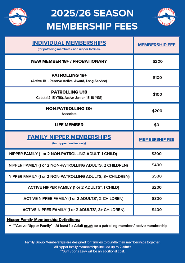If you have any further questions or queries, please contact our Club Office - admin@nobbysbeachslsc.com.